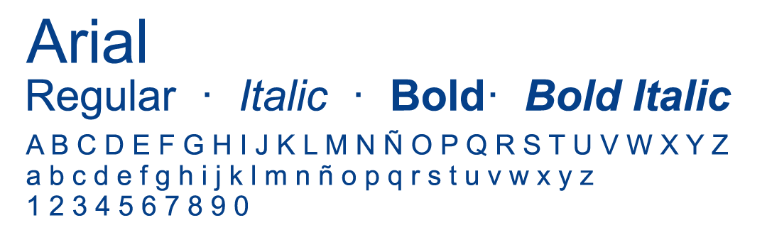 La tipografía utilizada en el logotipo de la Escola Universitaria Mediterrani corresponde a la Arial, una tipografía de tipo sans serif que, junto con el símbolo de la M, fundamenta la identidad corporativa de la EUM.